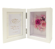 ○衝撃を与えると花が落下したり、破損する場合がございますので十分ご注意ください。 ○経年劣化により自然な色落ち・劣化する場合がございます。 ○高温・多湿時にお花の表面から染料がもれて色移りする場合がございます。最適な温度は15~25度・湿度は55%以下です。 ○プリザーブドフラワー・フェイクフラワーは非常に繊細のため、直接触ったりしないでください。やむを得ない場合は十分ご注意ください。 ○写真等を飾る場合は中の台紙に合わせてカットし、セットしてください。その際、アクリルのフチ等で怪我をしないよう十分ご注意ください。 |