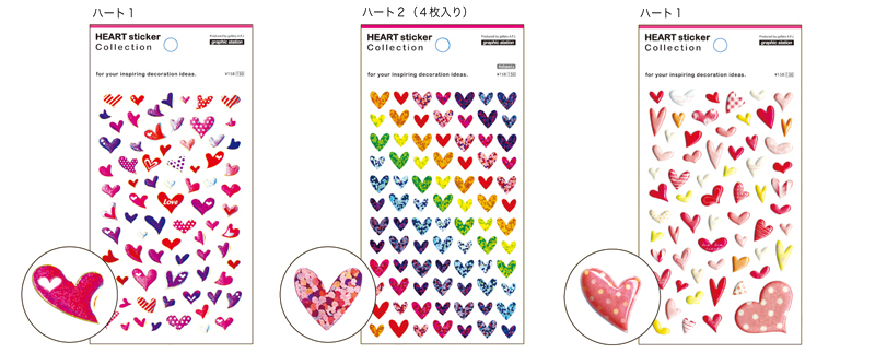 人気のハートモチーフシール。ツルンとしたエポキシ、キラッと輝くホログラム、ぷっくりキラキラと輝くトゥインクルの3タイプが揃いました。